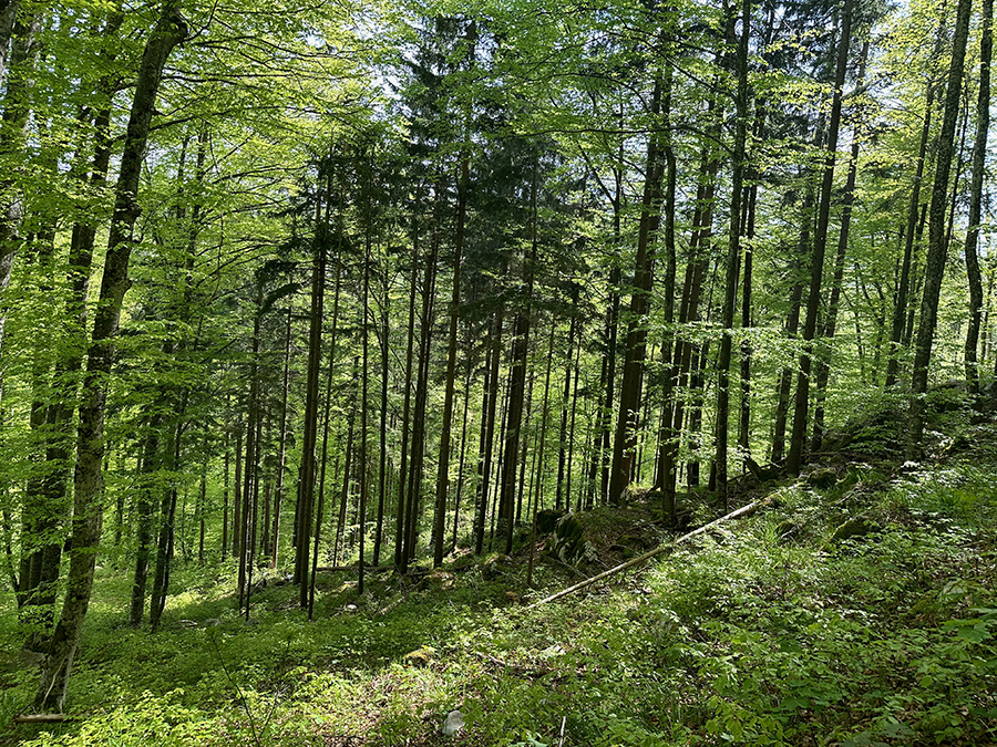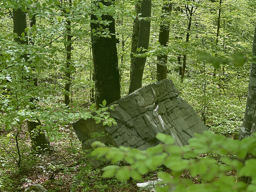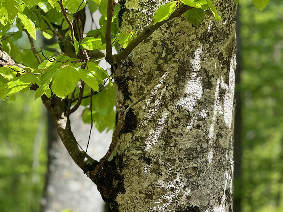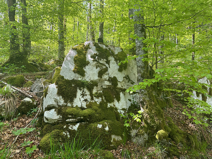 On the way up, you walk through a beech forest. The bright green trees are a nice contrast to the white rocks scattered throughout the forest.